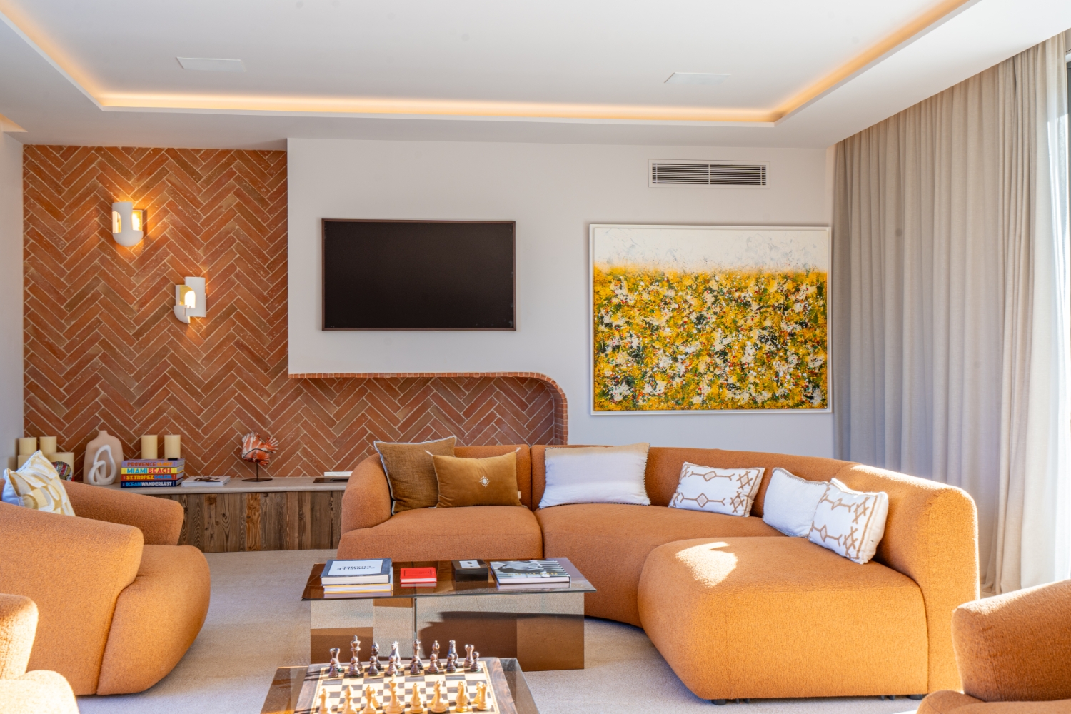 From the moment you arrive, you’ll be charmed by Villa Montana’s blend of contemporary and traditional elements from the South of France, such as stone cladding. Inside, every living space benefits from abundant natural light thanks to the omnipresent Tropezian sunshine. The generous volumes and spaciousness of the villa are enhanced by a refined decor, playing with shades of colour reminiscent of the emblematic “Terre d’Hermès”, such as sienna and terracotta, which echo the immaculate white. These hues, combined with soft, organic materials, give the villa a unique character. Through the choice of colors and fabrics, furniture and every ornament, interior designer Cécile Schwartz has created an ode to refinement and discretion.