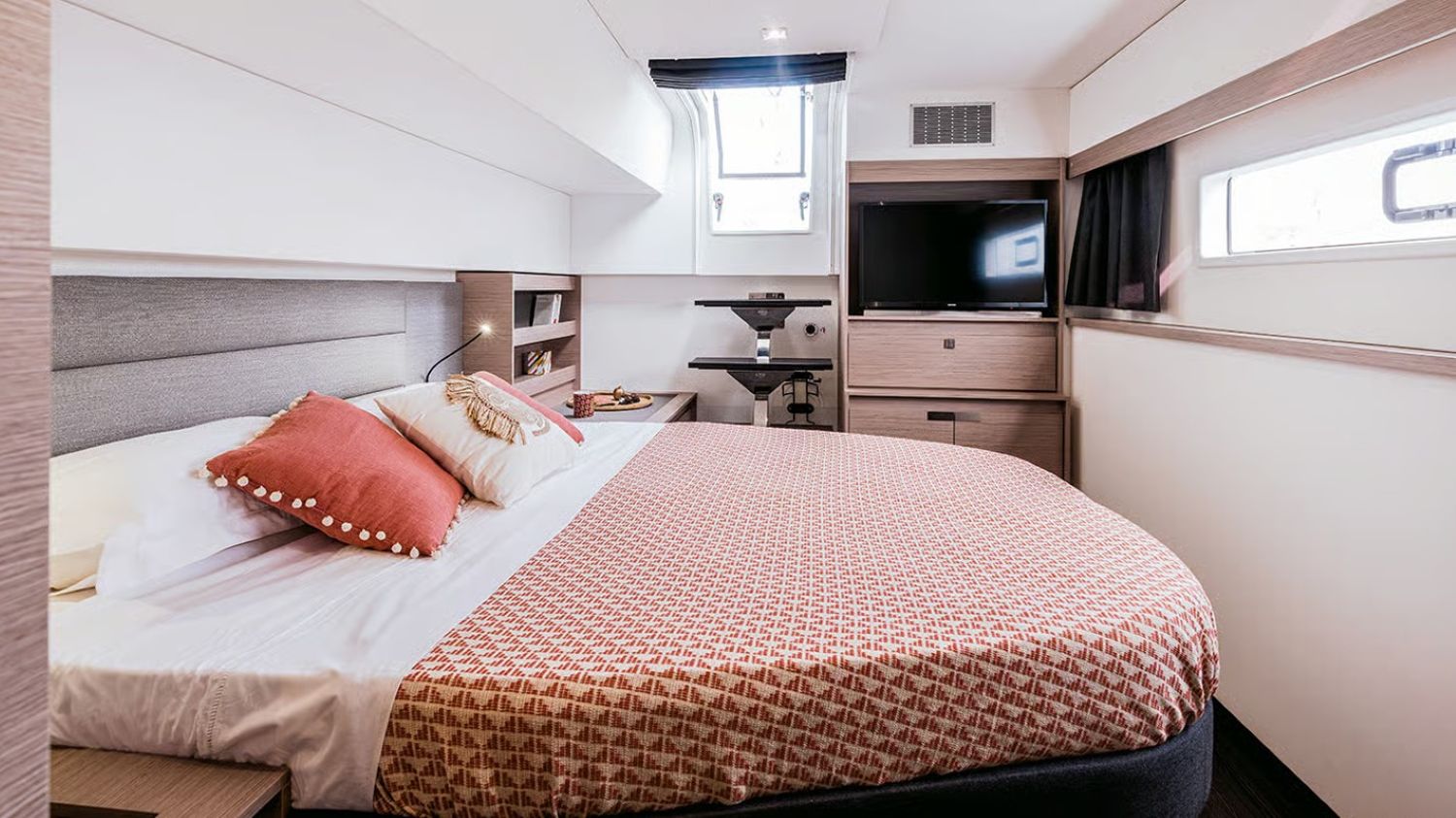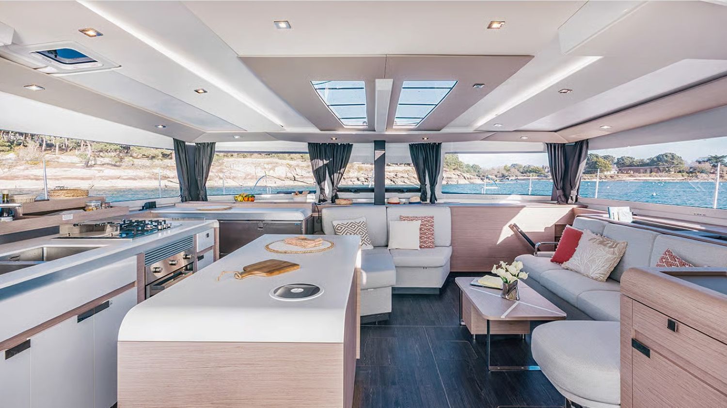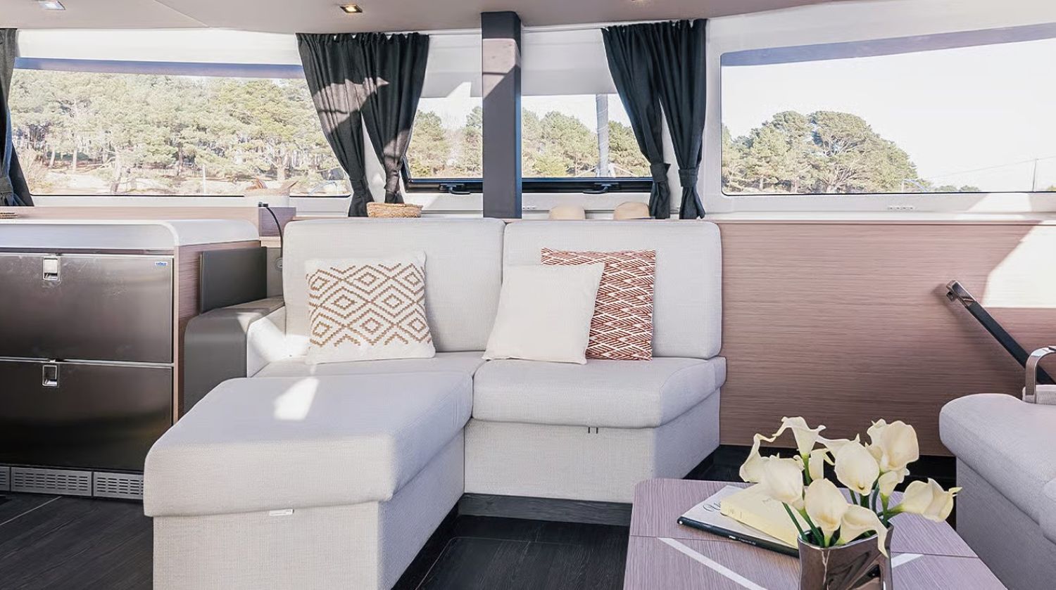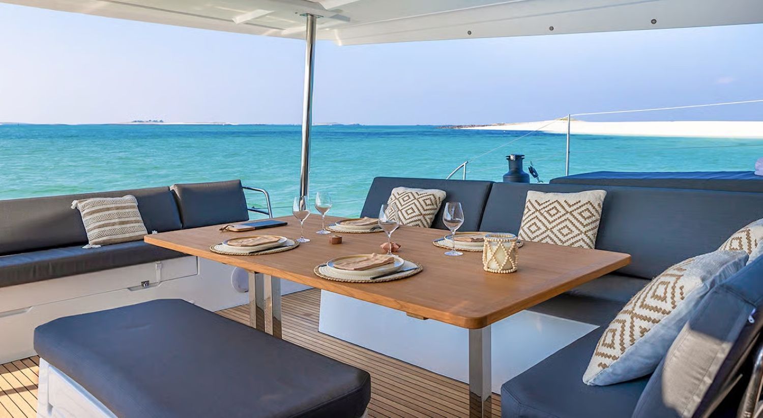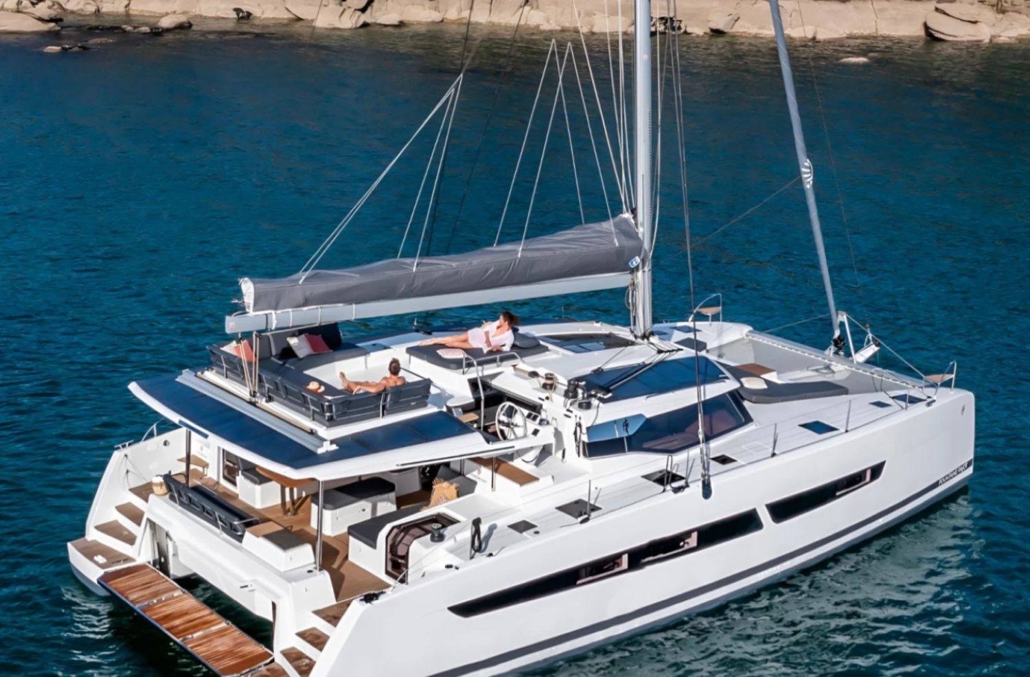 Our Catamaran Aura 51 can accommodate up to 15 passengers and is available for daily or weekly rental with a skipper and stewardess.