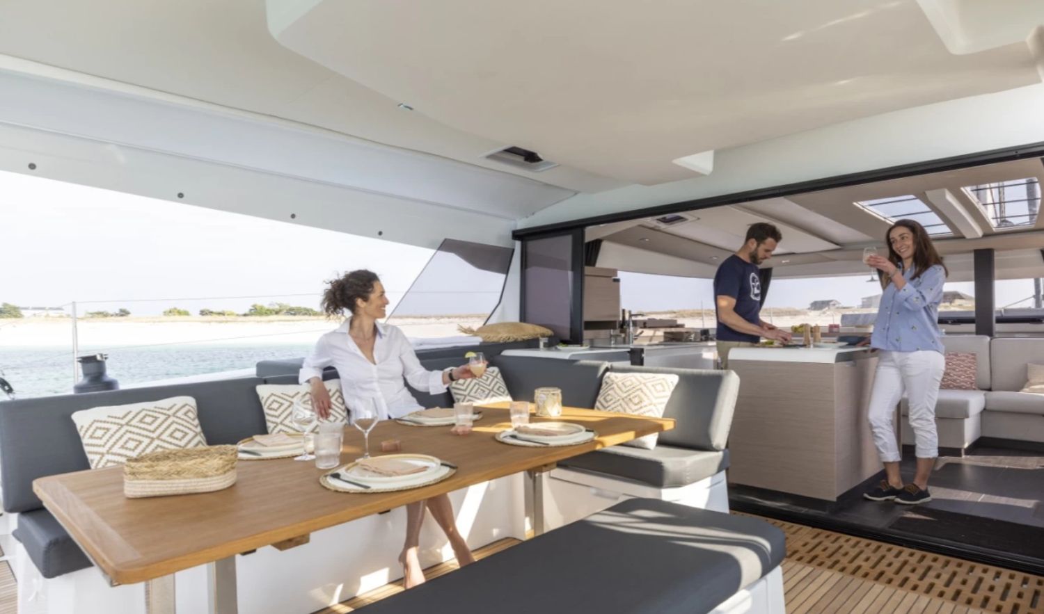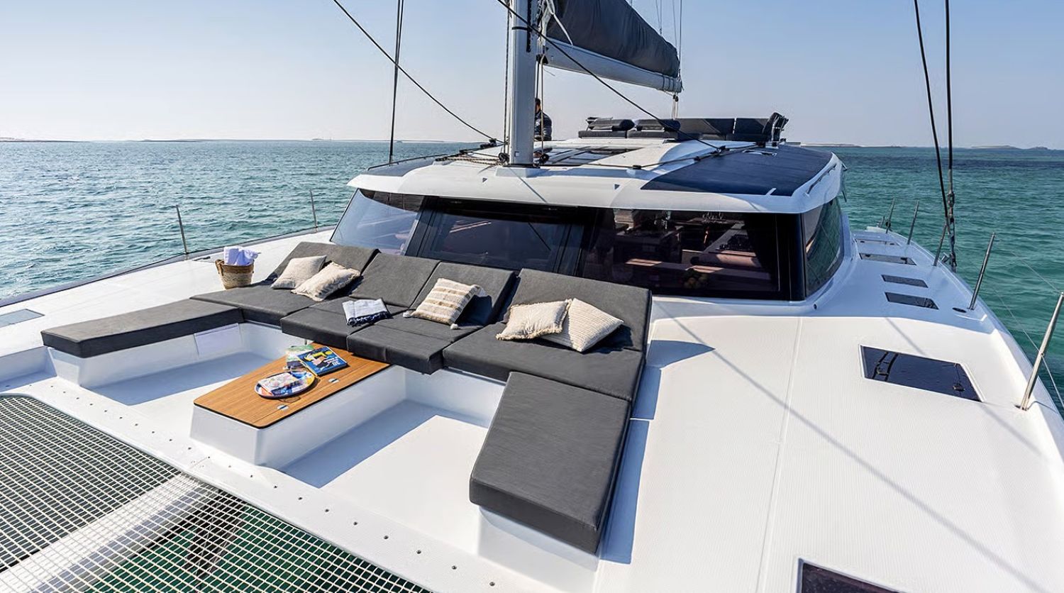 Excellence Riviera offers the Catamaran Aura 51 for charter from all French Riviera ports (Saint-Tropez, Ramatuelle, Sainte-Maxime, Port-Grimaud, Marines de Cogolin, Cannes, Monaco, Antibes, Nice, Saint-Jean-Cap-Ferrat).